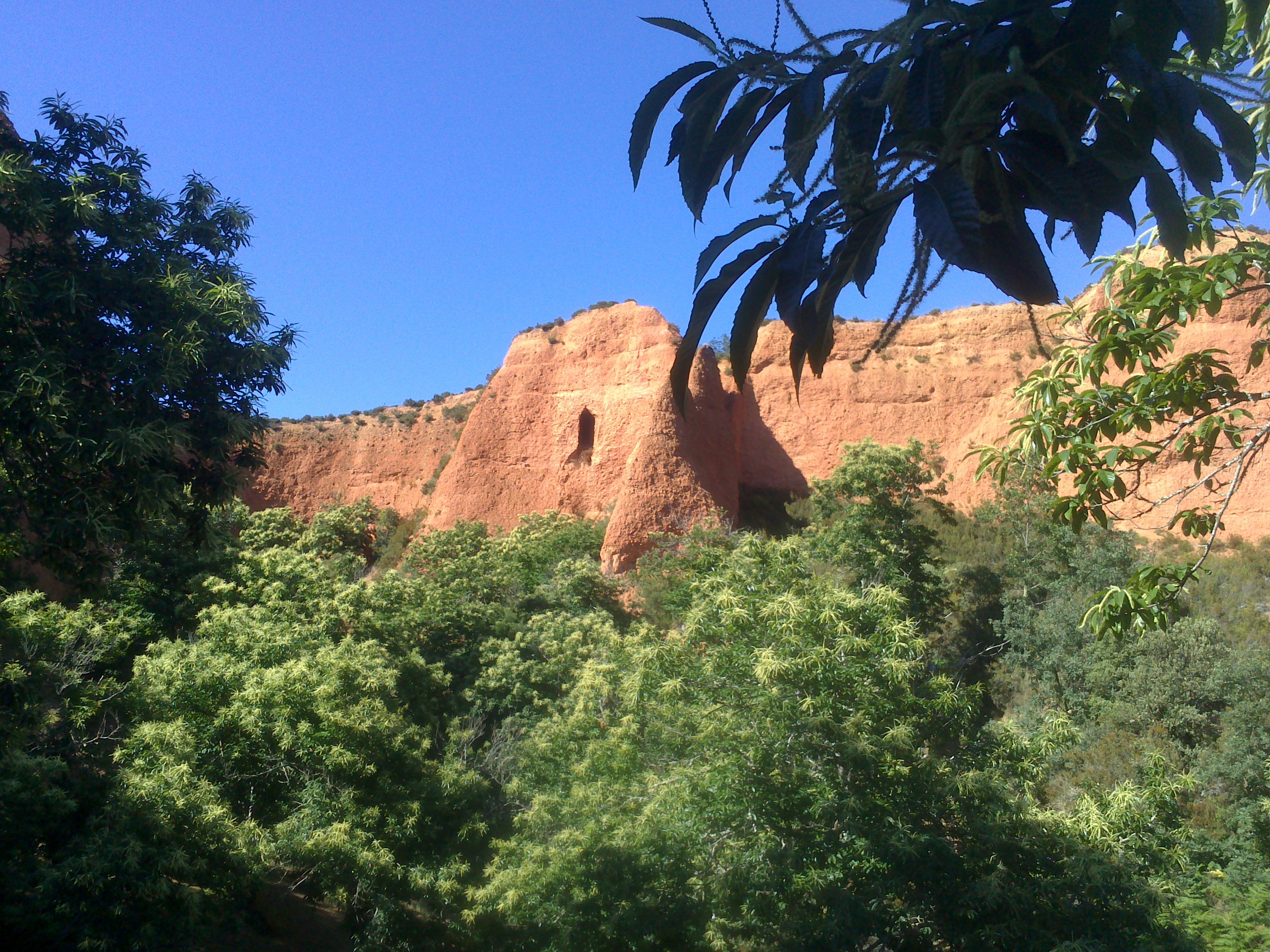 Si estás en Ponferrada, es imperativo comer un botillo e ir a Las Médulas, un yacimiento de oro que Roma explotó en el siglo I a costa de la vida de generaciones de astures. El resultado de la ingeniería minera (que no conocía la pólvora y usaba el agua como método para horadar montañas) es un paisaje espectacular que muda de aspecto con cada estación. Es verano y la ruta huele permanentemente a castaño en flor. Hay fresas, cerezas, helechos y una fronda constante. En lo alto: los picachos anaranjados que quedan de la montaña disuelta, atravesada por galerías. Los trabajadores de esta mina operaban en condiciones de esclavitud. Roma les daba una lucerna y una maza para trabajar. Algunos no veían la luz en meses. Otros no toleraban que el imperio les arrebatase la vida y se la quitaban ellos mismos envenenándose con tejo.