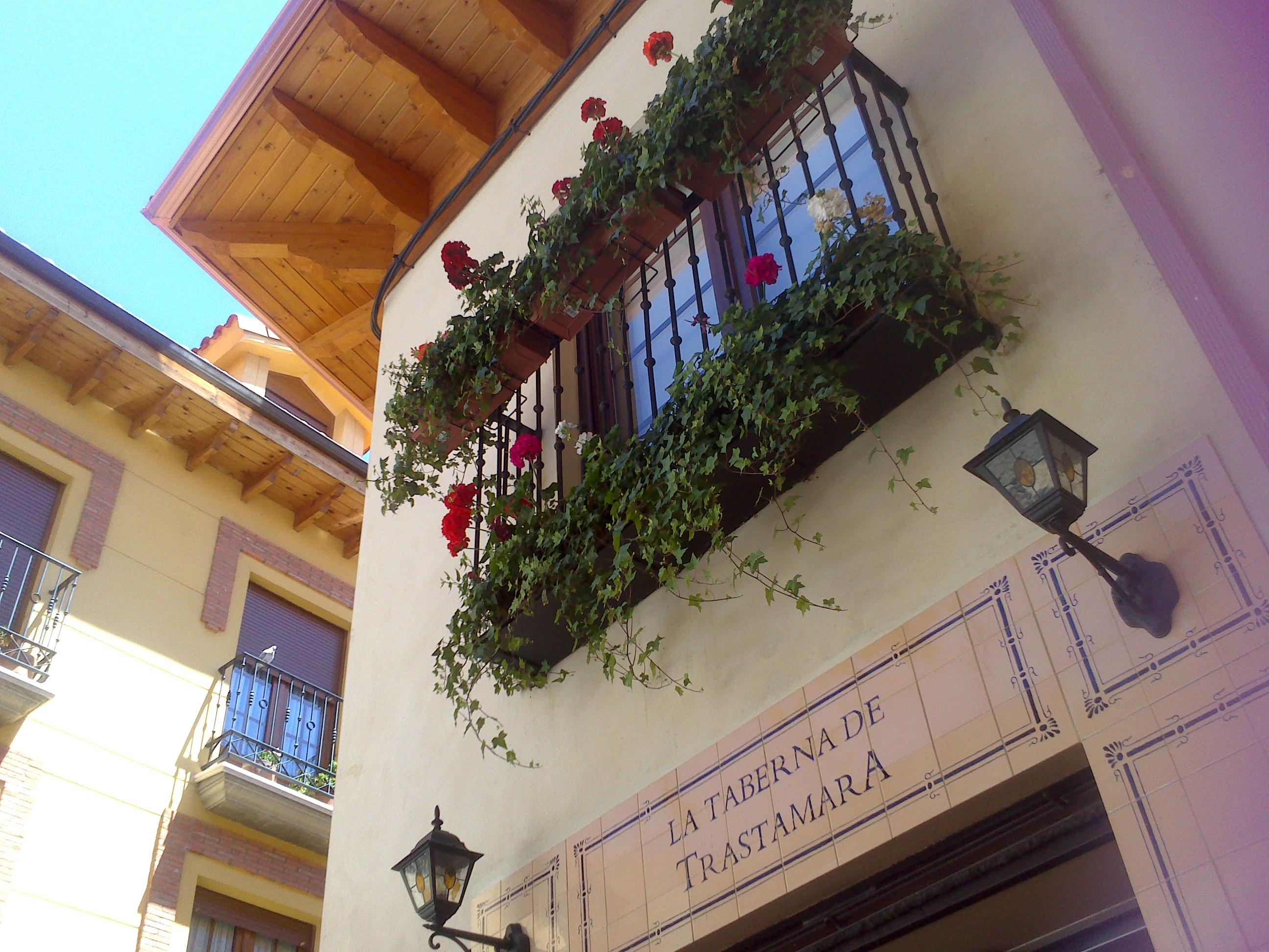 Al día siguiente: las tiendas, las flores de los balcones, los tejados, las fachadas, las plazas, los callejones, las pintadas de algunas paredes… Al MUSAC no llegamos, por culpa de su horario estival (o de nuestro horario de verano). Sólo pudimos pasearnos por su plaza. Al Parador de San Marcos hay que entrar, porque fue hospital, luego convento, posteriormente campo de concentración y hoy, hotel. El León de mediados de julio es bastante arrebatador. Nos despedimos de él desde la estación de tren.