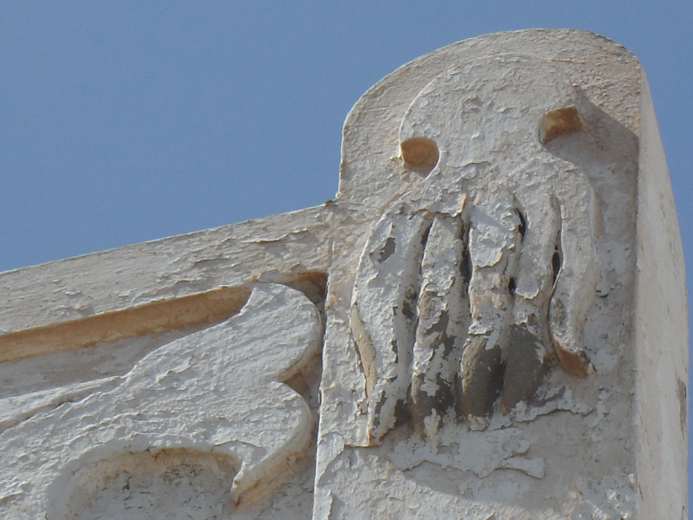 Con paciencia, gafas de sol y un zoom adecuado, se distingue un pulpo de sólo cuatro tentáculos en el paramento de la planta baja.