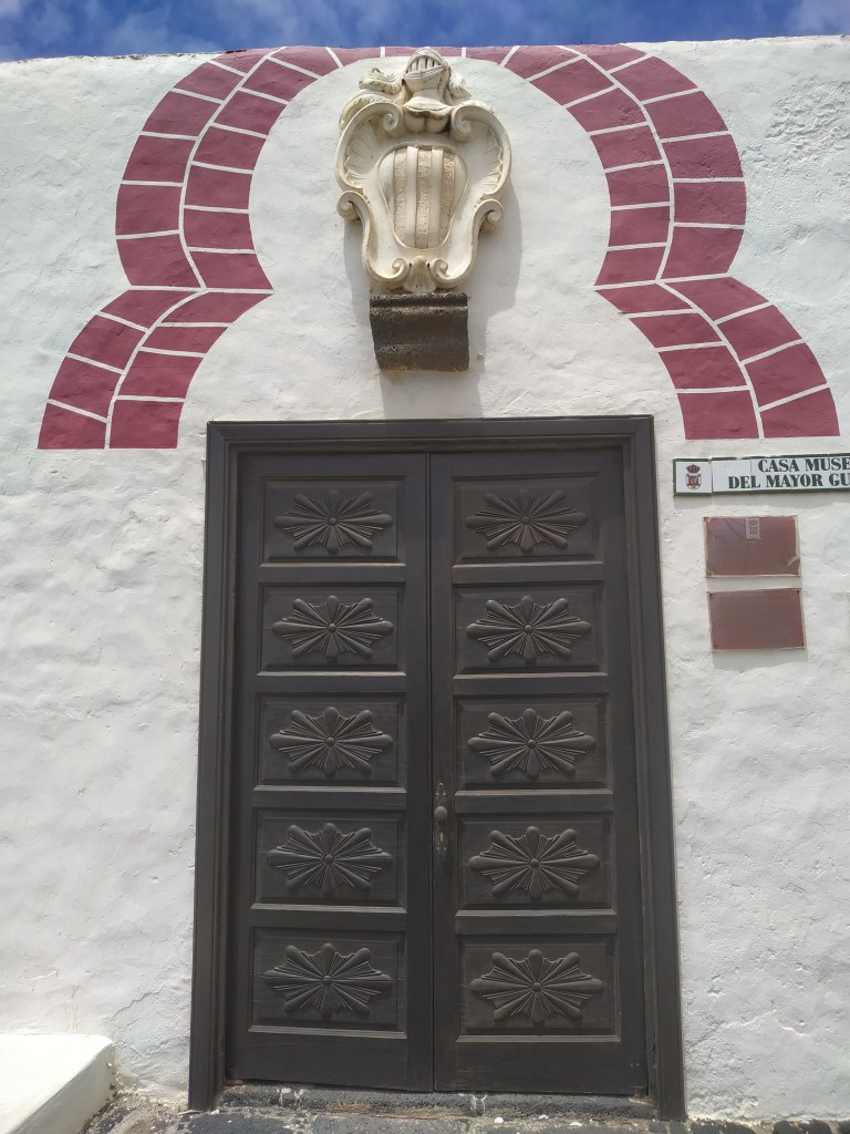 Lo que sí podemos contemplar es el blasón de mármol blanco que anuncia a cualquiera que pase por la puerta principal (fabricada en madera de tea y decorada con cuarterones) que estos fueron los dominios de una Perdomo, en concreto de María Andrea, la mujer que se casó con el mayor. Más que la genealogía de los señores, me intriga la vida ordinaria en el Lanzarote de mediados del siglo XVIII.